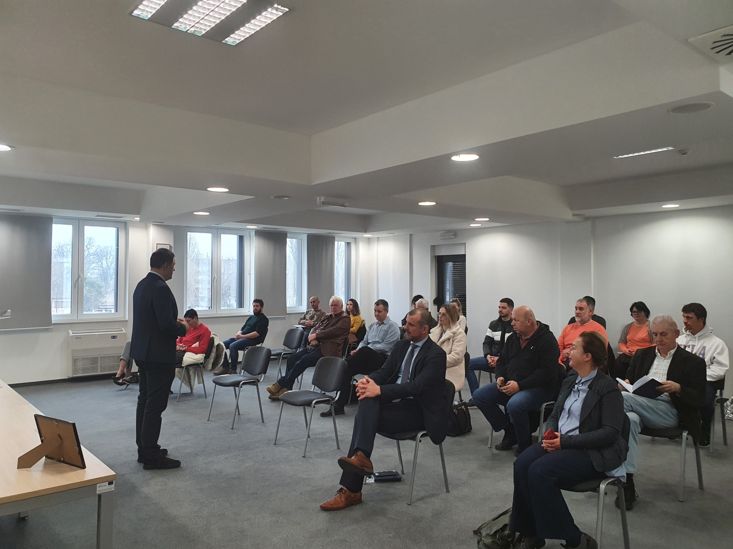 Informativnu radionicu su održali Biljana Tintor Jerković iz Sektora za podršku i razvoj poduzetništva, koordinaciju i međunarodnu suradnju iz HAMAG BICRO-a i Boris Čagalj, voditelj područnog Ureda za Slavoniju i Baranju iz HBOR-a.